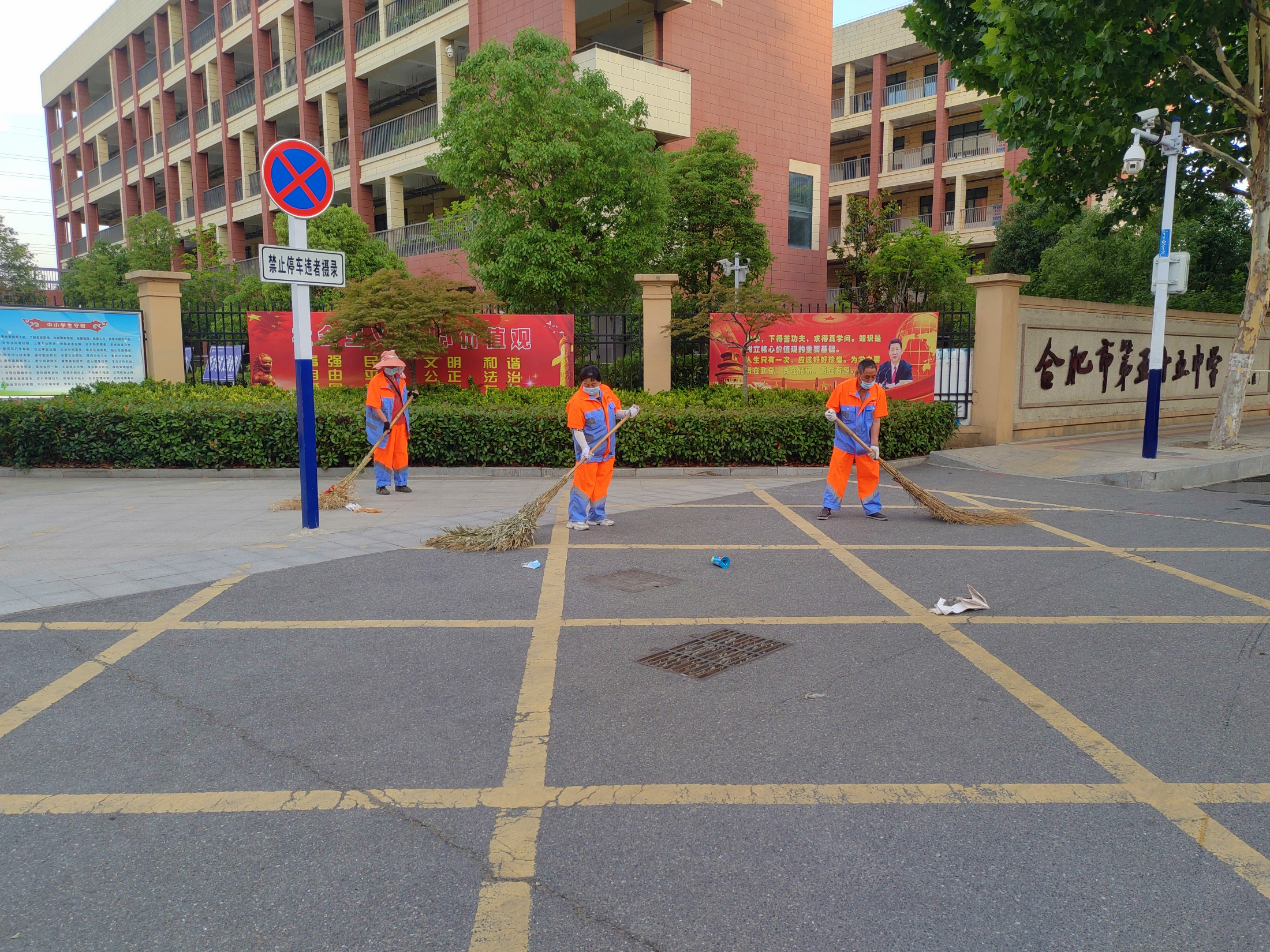 為保證考場周圍的安靜,博景環衛隊全天開啟“靜音”模式:統一關閉提示工作音,禁止鳴笛,全方位抑塵降溫,人工代替機械工作減少噪音。力求為廣大考生提供一個安靜、清涼、舒適的考試環境,做到考場周邊環境“凈又靜”。