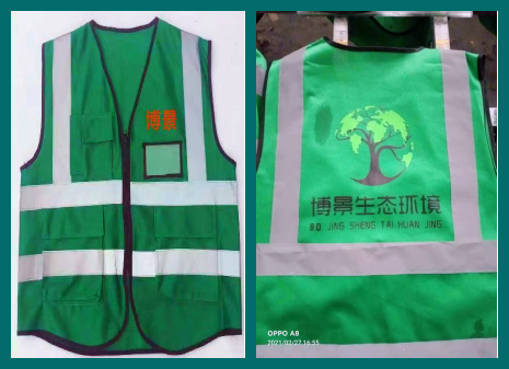 河道工作環境復雜,結合工作性質,按照管理要求,博景生態環境將綠化服裝統一化,增加反光條,保證綠化工作的正常開展。在施工中,注重一線工人的人身安全,分發統一亮色雨衣,確保在惡劣天氣下的工作有序開展;給每位工人配備安全設施,保證安全為第一生產要素。