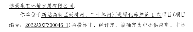 2022年6月1日,博景生態環境發展有限公司正式進駐“板橋河河道綠化養護項目”。
