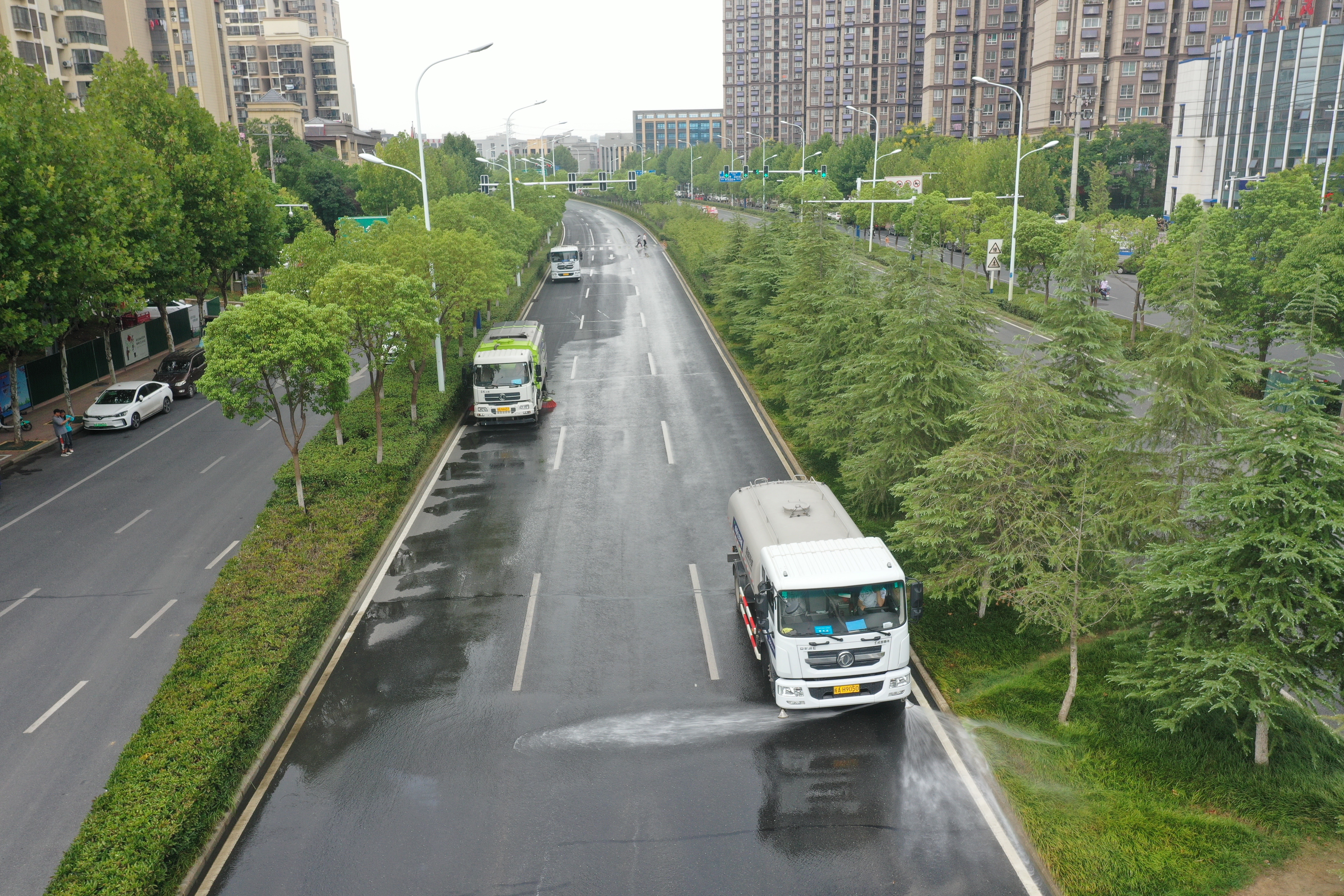 加大機械作業頻次及作業覆蓋率,固定車輛在道路上循環式進行作業。水車以全路段每天不少于六次的標準徹底沖洗路面,每天不少于兩次的灑水降塵,洗掃車以每天不少于四次的標準洗掃保潔,水車及洗掃車相互配合以達到“以克論凈”標準。