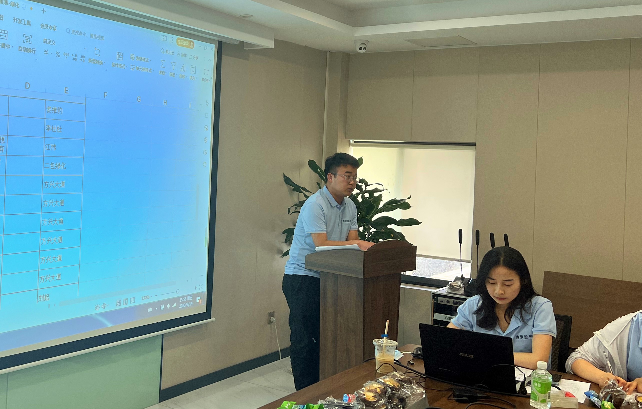 會議由部門副經理王昊然、趙程瑋主講,環衛事業部所有基層員工、項目經理代表顏磊、阮志忠以及部門經理紀春義參加會議。