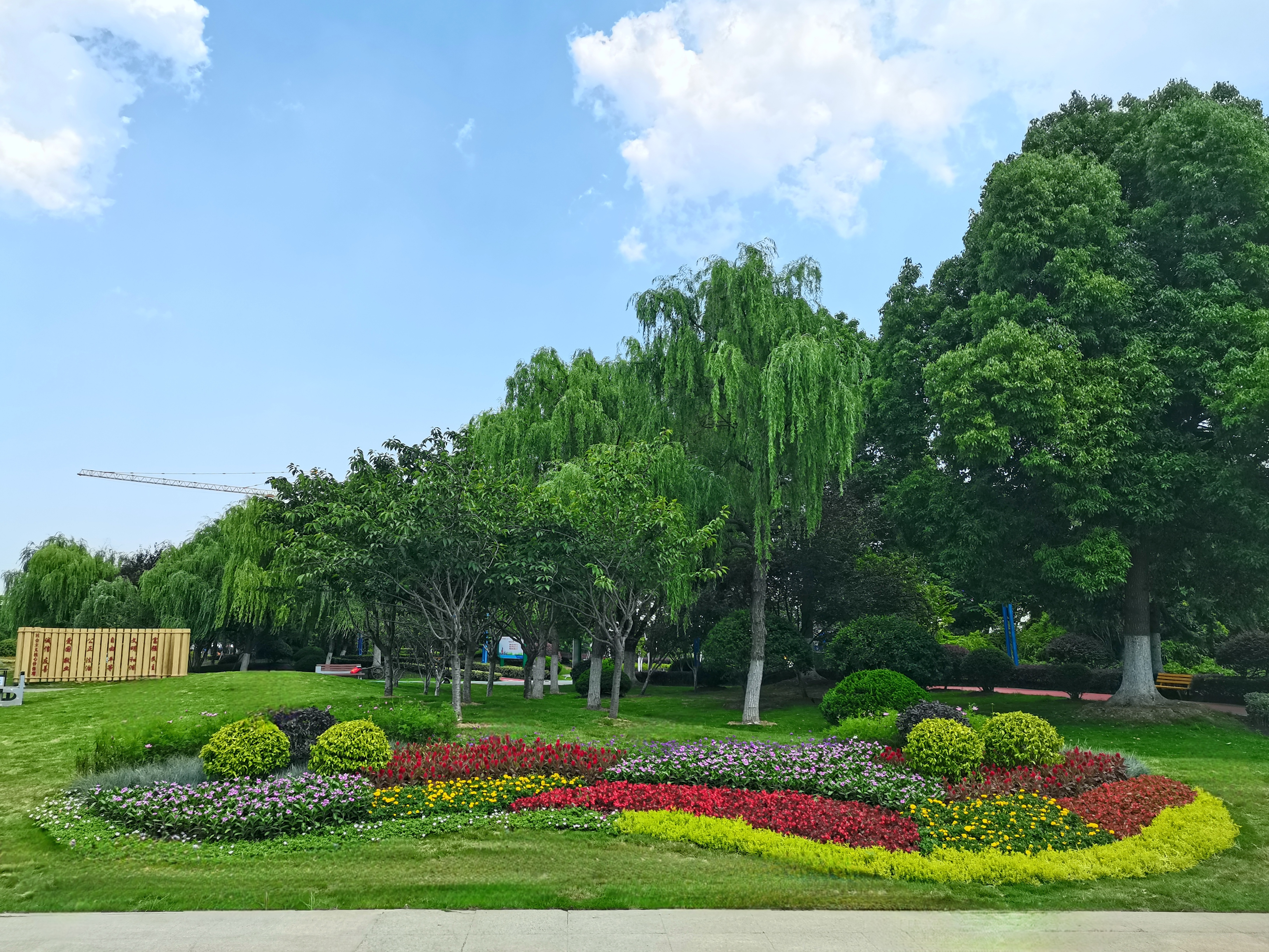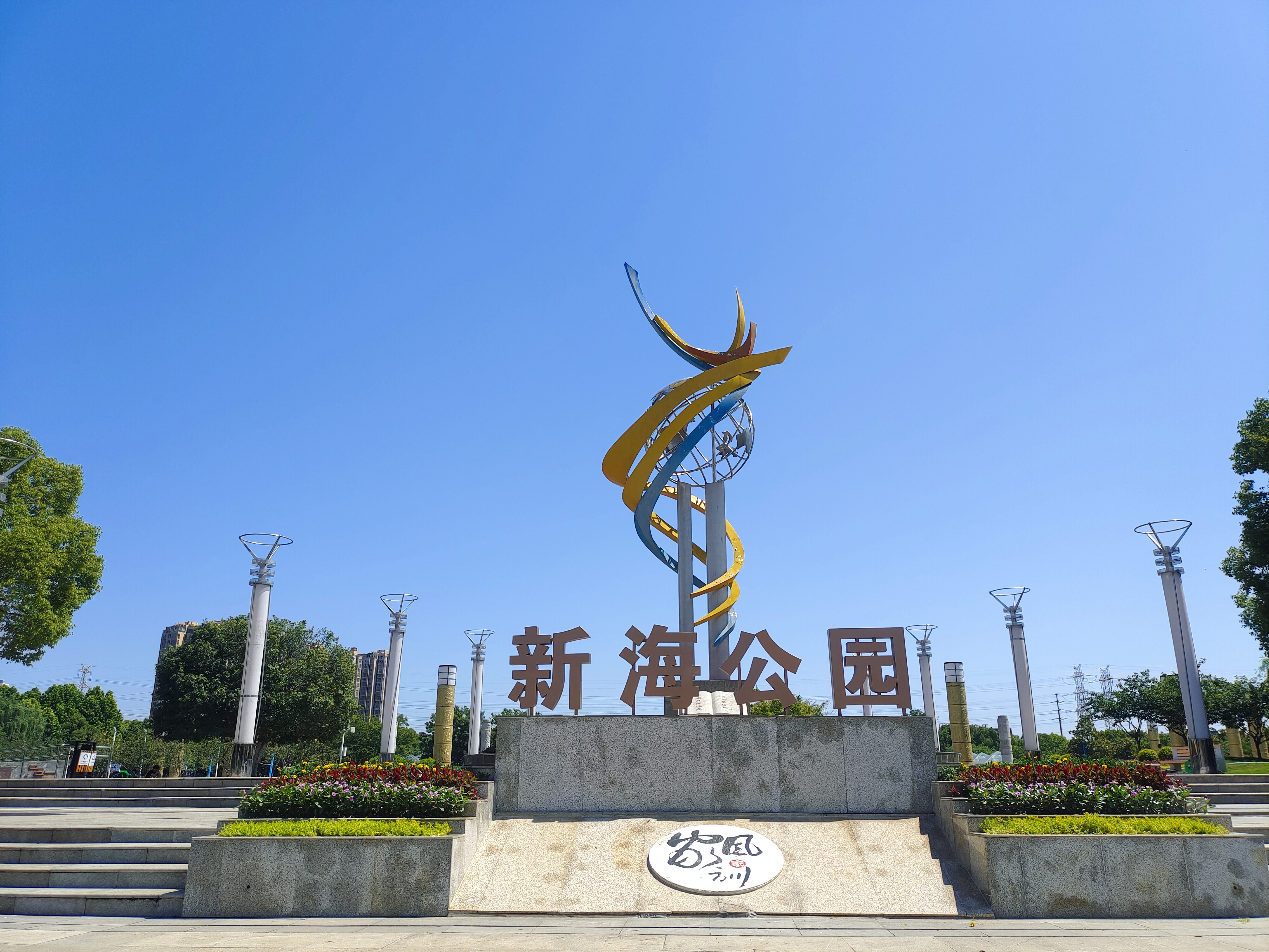 合肥市新海公園位于當涂路與新海大道交叉口東北角,其用地面積約6.8萬平方,是我省首個家風家訓主題公園。園中蔥蔥郁郁的樹木包圍著整個廣場,錯落有序,淺綠、深綠層次分明,形成大小不一的景觀區,好似一幅明艷的水彩畫。