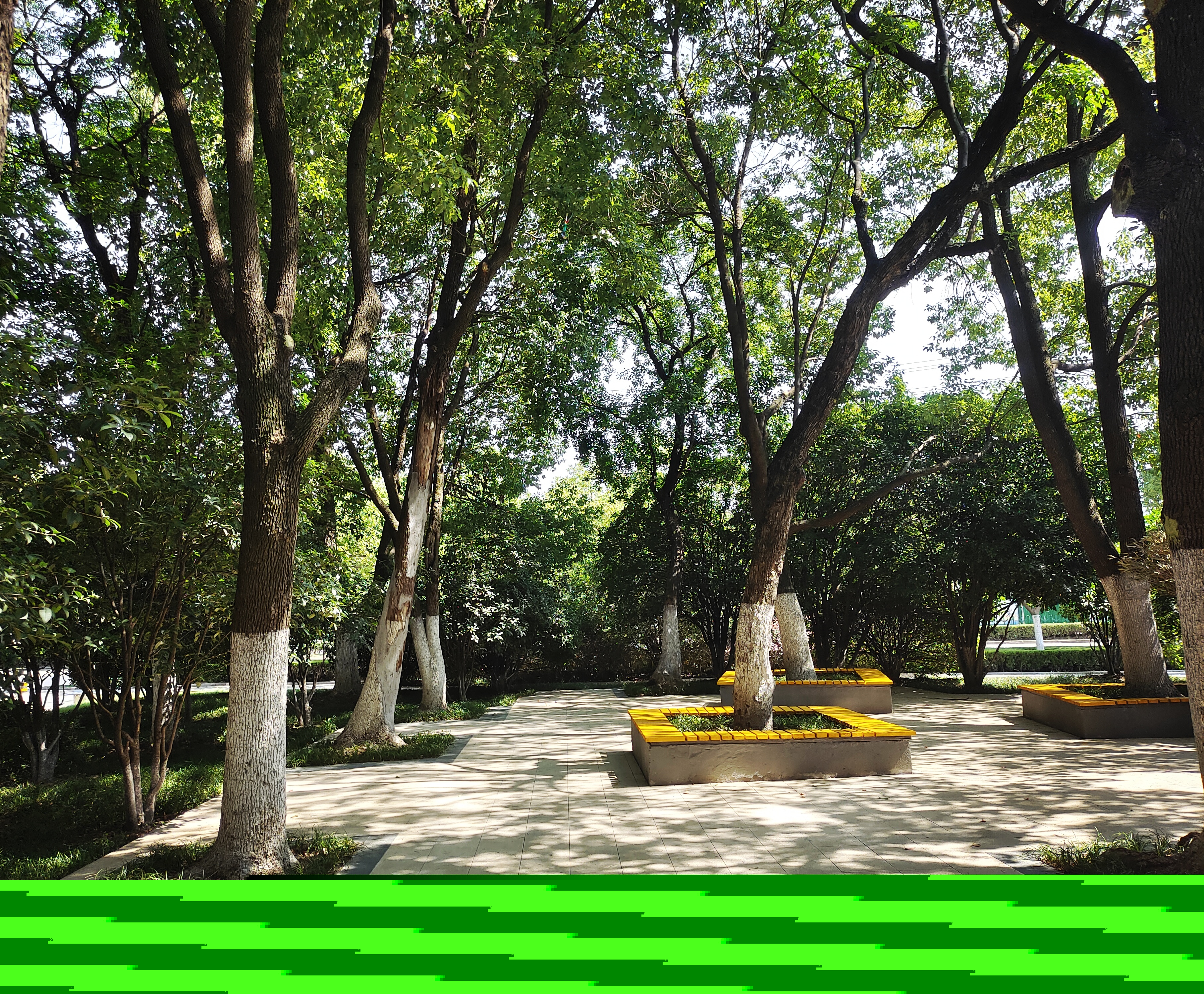 園林的本質是為了服務于人,在物質提升的基礎之上,追求環境和精神的提升。站北文化廣場由于其本身面積較小,休憩的區域有限,為了滿足周邊游客居民的休憩需求,在提升改造樹池的基礎上,將座椅和樹池相結合,真正做到了將物融于景。