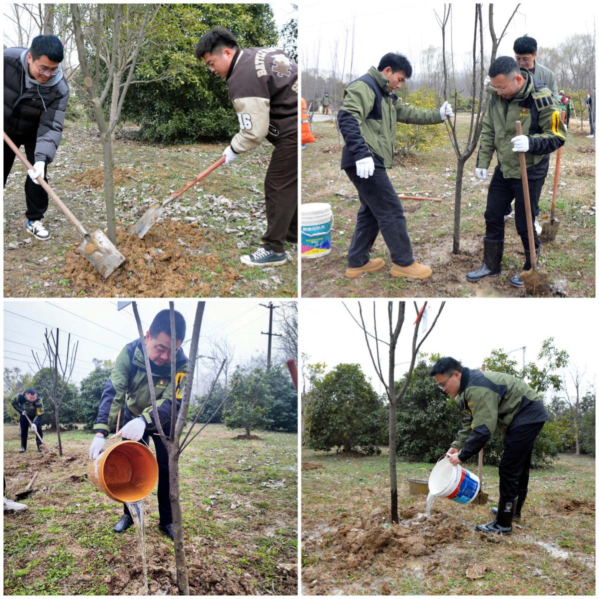 活動正式開始后,只見參與人員熱情高漲、干勁十足,植樹現場一片熱鬧的勞動景象。每棵小樹苗旁都三五成群,大家分工協作,揮鍬鏟土、扶樹正苗、夯土踩實,認真細致做好每一道工序。不一會兒,一株株新綠昂然挺立,為春色增添了一抹盎然生機。