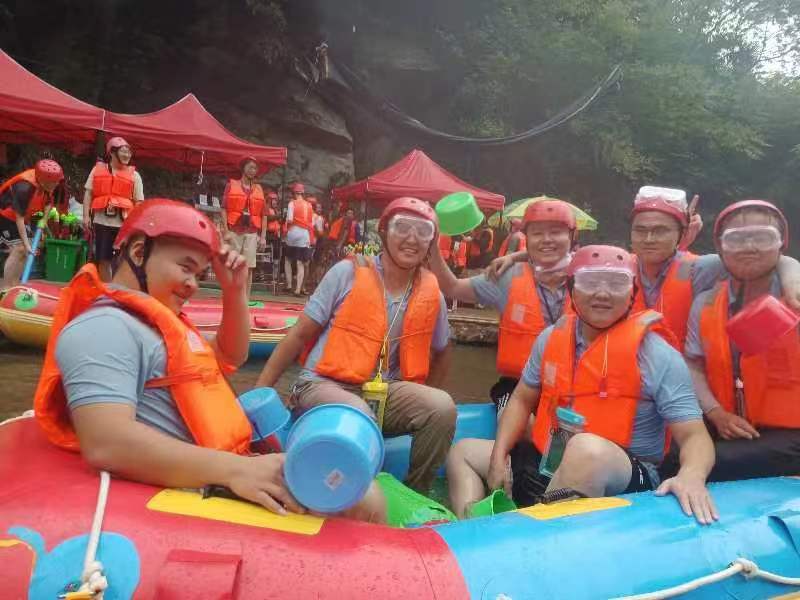 7月23日,主題為"凝心聚力揚帆起航,激情漂流共同前進"的漂流團建活動在霍山大峽谷舉行。博景環衛事業部的員工們統一著裝,戴好安全帽,穿上救生衣全副武裝,做好漂流安全準備工作。